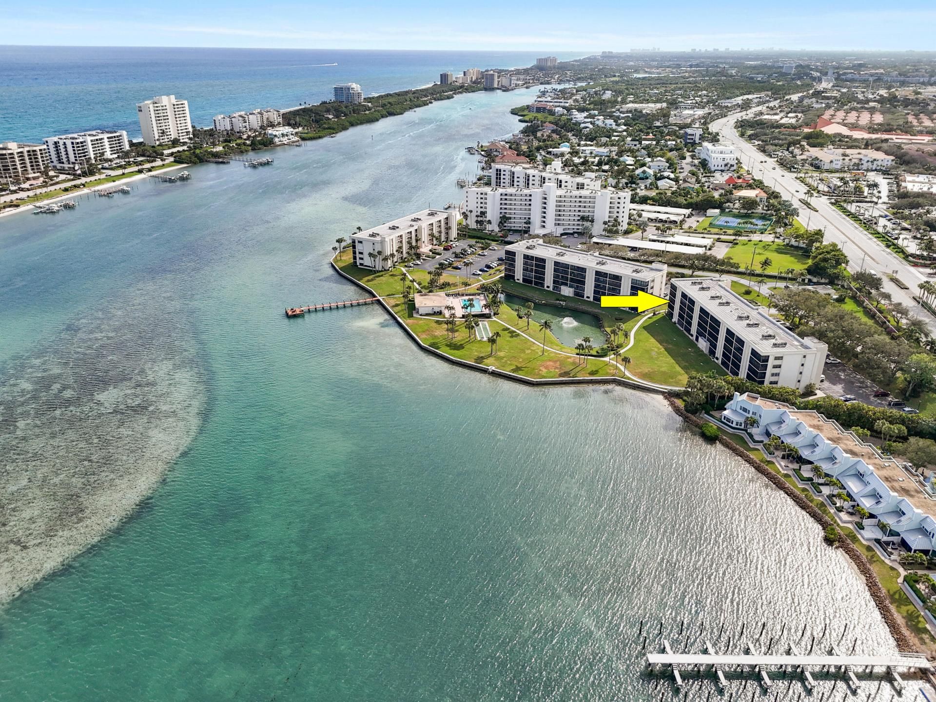 Edit mortgage details for a more accurate paymentFantastic location! Don't miss this rarely available, pristine corner unit in the heart of Tequesta with panoramic views of the tranquil blue waters of the Intracoastal Waterway and the Atlantic Ocean. Tastefully updated throughout, this condo features two spacious primary bedrooms with en-suite bathrooms, providing both privacy and comfort. The spectacular kitchen is a chef's dream, designed with stunning quartz countertops, elegant shaker cabinets, a striking herringbone backsplash, and stainless steel appliances. Enjoy peace of mind with hurricane impact windows throughout the unit, ensuring safety and energy efficiency.Additional highlights include an in-unit laundry room and ample extra storage. The community offers a variety of amenities, including a common dock, a refreshing pool, shuffleboard, and a welcoming community room for social gatherings.This unit is sold with furniture, allowing you to move right in and start enjoying the lifestyle you deserve.Don't miss the opportunity to live in paradiseschedule your private showing today!All measurements are approximate.