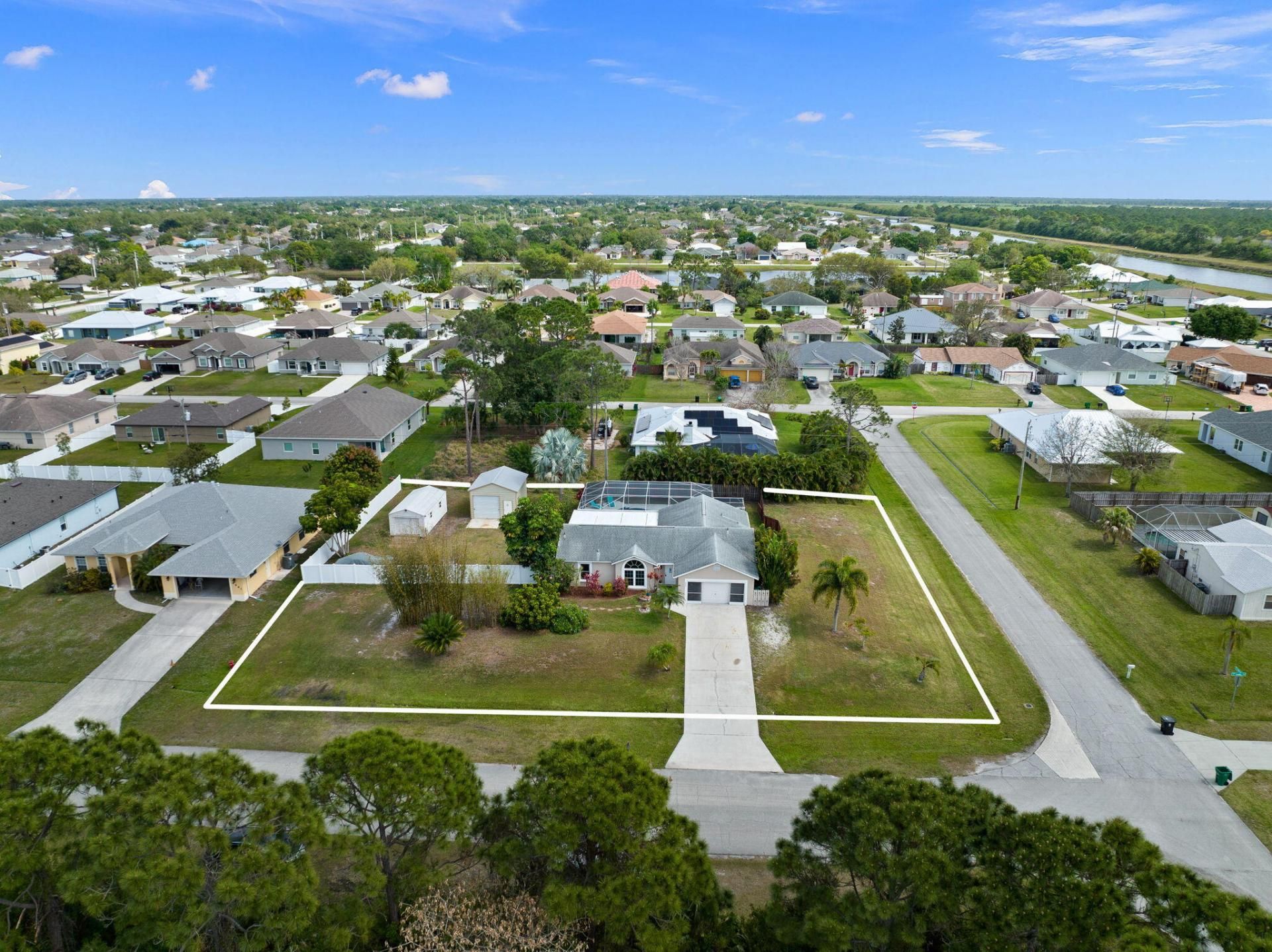 Edit mortgage details for a more accurate paymentWelcome Home to your One-of-a-Kind Property, with plenty of room for your RV, Boat, or Trailer! Great Location, the LAST HOME at the end of Savona, south of Becker Road! Discover this CBS 3 Bedroom, 2 Bathroom, 2 Car Garage Pool w/Jacuzzi Home, centrally located in Port Saint Lucie! Situated on a 1/2-Acre Corner Lot, with an Incredible Lakeview, in a low-traffic neighborhood. This Stunning Home has Natural Light beaming from any angle! Featuring an open, Split-Floor Plan, with Vaulted ceilings throughout the main Living Areas. 2 Oversized Sheds (20x16) with Electric, 2-RV 50 AMP Hookups. Interior Painted- 2022, Newer Roof- 2018, New Flooring-2022, New W/H- 2021, Vinyl Fence- 2022, New Dishwasher/Range- 2022, Partial Impact Windows. The Kitchen features S/S Appliances, an Eat-in Breakfast Bar, perfect Coffee Bar or Prep Area w/Tile Backsplash, tons of counterspace/storage, and Formal Dining Area.Master Suite offers a Newly Remodeled Tile Shower, New Light Fixtures/Faucets/Fixtures (BOTH Bathrooms), and a walk-in Closet. Slider leading out to your Pool/Jacuzzi area, w/Huge Covered Patio (28x16), Great for Entertaining with Mature Landscaping along the Property for added Privacy, to enjoy your outside Oasis. Just minutes from I95 or Turnpike and Tradition! Come see all this beautiful Home has to Offer today!