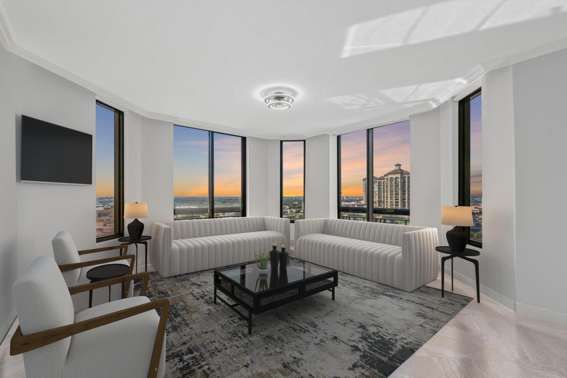 Edit mortgage details for a more accurate paymentMust-See Luxury Corner Residence in Two City Plaza with Breathtaking Views! This stunning 2-bedroom, 2-bathroom corner condo offers panoramic skyline and sunset views over Clear Lake through dramatic floor-to-ceiling windows. Spanning 1,664 sqft, this spacious residence features high ceilings, a dedicated foyer, all marble living area flooring, and an oversized kitchen with an eat-in nook. Recent upgrades include new wood flooring, fresh paint throughout, upgraded lighting, and premium kitchen cabinetry with stone countertops. The primary suite boasts new wood flooring, custom-fitted walk-in closet, and a frameless glass shower. Additional conveniences include a larger laundry room, premium parking on P5, and extra storage. Amenities in this full-service building are endless; 24-hour... security, concierge, roof top pool with towel service coming soon, hot tub, sauna, steam room, fully renovated state of the art fitness center /gym, outdoor kitchen w/ BBQ area and all new Restoration Hardware furniture, outdoor & indoor movie theaters, club room, table tennis, lanai courtyard w/ water feature, renovated roof top dog park area, complimentary valet parking & exceptional staff. Centrally located in the heart of Downtown West Palm Beach, across from One Flagler offices, 7 minutes to PBIA airport, award winning restaurants, shopping, Worth Ave, and Palm Beaches.